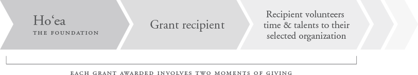 Ho‘ea — The Foundation requires all grant recipients to volunteer their time and talents to an organization of the grant recipient’s choice. We hope our unique grant process cultivates that spirit of “pay it forward” and the belief that we all, always, have something to share with and give to our community.